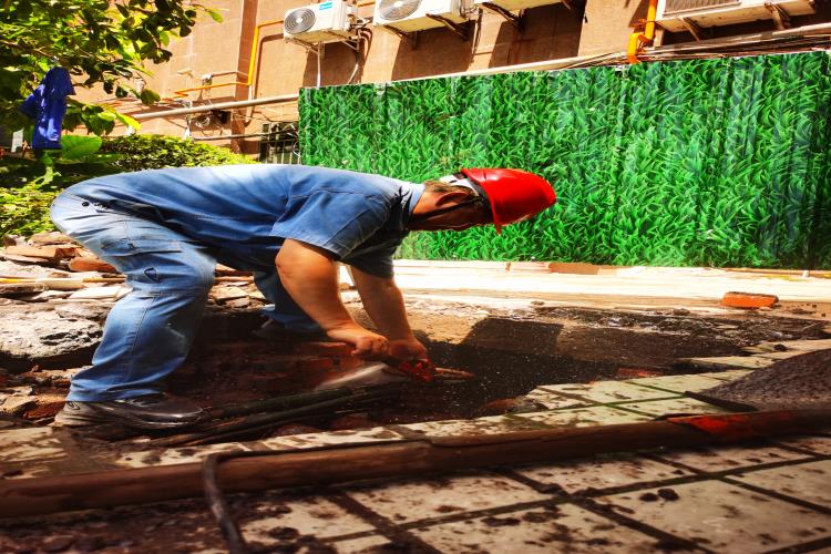 在這支水務(wù)藍隊伍里有這樣一位衛(wèi)士——管道維修工張國彪,他頭頂烈日,腳踏熱土,始終堅守城區(qū)管道巡檢第一線。此刻的他正蹲在破裂水管旁,藍色工裝早已被汗水浸透,緊緊貼在背上。他抹了把臉,任憑汗珠混著泥水滑落,手里的扳手卻一刻沒停,這已是他今天處理的第二個搶修點。