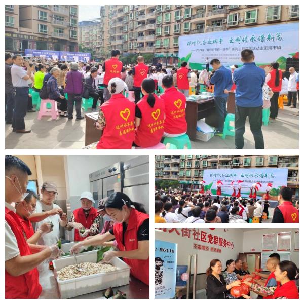 樂在其粽。達(dá)州水務(wù)集團(tuán)高新區(qū)分公司組織志愿者與結(jié)對聯(lián)創(chuàng)單位——河市南大街社區(qū),在河市鎮(zhèn)中心廣場的“粽葉飄香迎端午 文明傳承譜新篇”系列主題活動走進(jìn)河市鎮(zhèn)宣傳活動,助力結(jié)對聯(lián)創(chuàng)工作。此外,志愿者們向河市鎮(zhèn)敬老院和社區(qū)困難群眾送上了親手制作的粽子,并送上了美好的祝福。