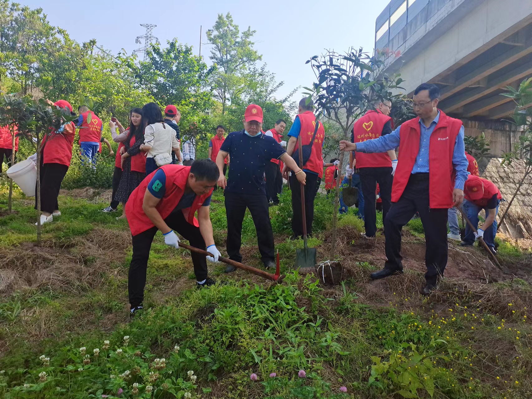 活動(dòng)中,志愿者們揮鍬鏟土,栽植樹苗、提水澆灌,三人成組、五人成團(tuán),每道工序都做得認(rèn)真仔細(xì)、一絲不茍,志愿者們更是爭(zhēng)先恐后,干勁十足。一棵棵新栽種的樹苗亭亭玉立,在明媚的陽光中呈現(xiàn)出勃勃生機(jī),為大地平添一抹新綠。