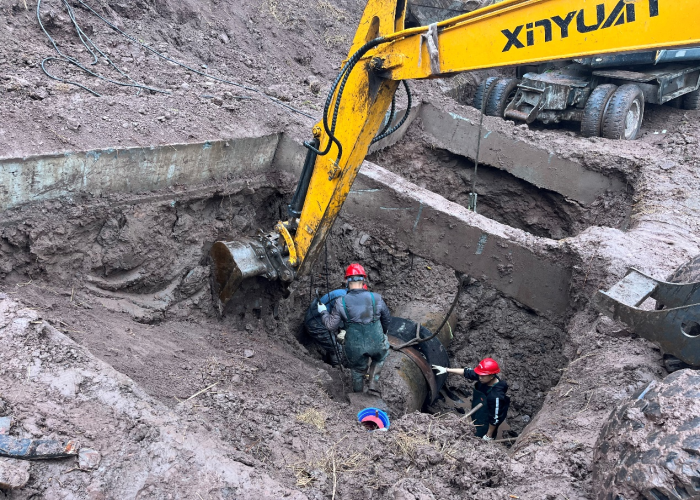 險情發(fā)生后,水務(wù)集團黨委高度重視,黨委書記、董事長盧輝帶隊奔赴搶險現(xiàn)場指揮調(diào)度,要求惠泉公司立即組織搶修,盡快恢復(fù)管網(wǎng)運行,盡最大努力減少污水外溢,集團安全環(huán)保部、規(guī)劃建設(shè)部、惠潤達公司到場指導協(xié)助?;萑绢I(lǐng)導班子立即召開緊急現(xiàn)場會,連夜組織調(diào)度搶險人員和設(shè)備,出動搶險人員100余人次,挖掘機、吊車、多功能搶險車等工程機械10余臺,合理調(diào)配人手,組建臨時班組,采取人機輪班,就地休息的方式,在確保安全的情況下,迅速開展搶險工作。