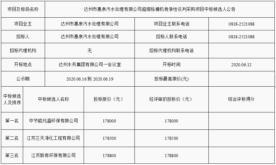 上一篇:達(dá)州市惠泉污水處理有限公司2020年度石灰粉采購比選項(xiàng)目中標(biāo)候選人公告