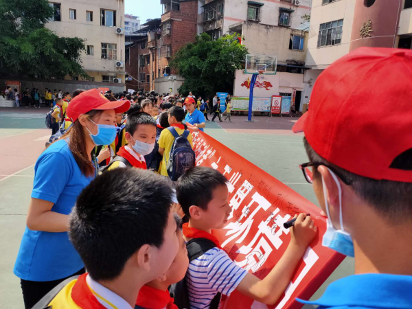 活動中,志愿者們首先采取集中宣講和你問我答的方式向廣大師生廣泛普及環(huán)保知識;呼吁廣大師生積極參與到環(huán)境保護(hù),堅(jiān)持從自己做起、從身邊做起,節(jié)約每一滴水、每一度電、每一張紙,進(jìn)一步調(diào)動了全體學(xué)生爭做“環(huán)保小衛(wèi)士”的熱情。同時,也希望用師生們的實(shí)際行動影響和帶動各自家庭的每一個人,讓更多的人共同參與到生態(tài)環(huán)境保護(hù)工作中來,爭做環(huán)境保護(hù)的宣傳員和行動者,實(shí)現(xiàn)人人關(guān)心環(huán)保、人人參與環(huán)保的良好氛圍。其次,志愿者們積極開展了“美麗中國、我是行動者”簽名承諾活動,全校師生更是踴躍參加,并主動宣誓承諾,一定做一名合格的“環(huán)保小衛(wèi)士”。