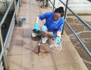 每天她都早早來到化驗室,擦桌子、啟烘箱......做足上班前的各項準備工作。當我們大家到公司上班打卡時,她已在進出水口和生化池取水樣的路上了。水質采樣化驗,擔負著進出水水質把關的重任。因此她對工作始終保持著高度重視、一絲不茍的態(tài)度,每個水樣都嚴格遵守行業(yè)標準和操作規(guī)程。
